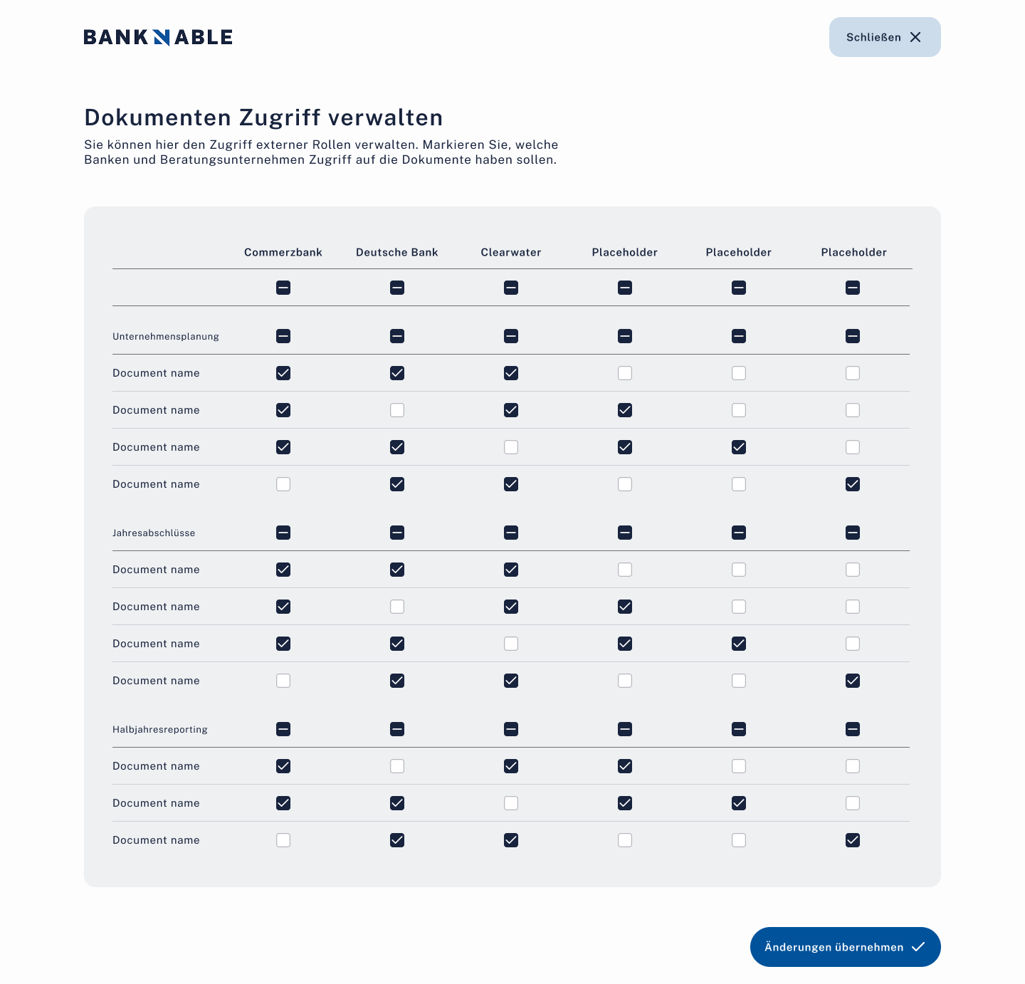 external_permissions | Dokument × Bank/Berater Zugriffsmatrix | Offen |